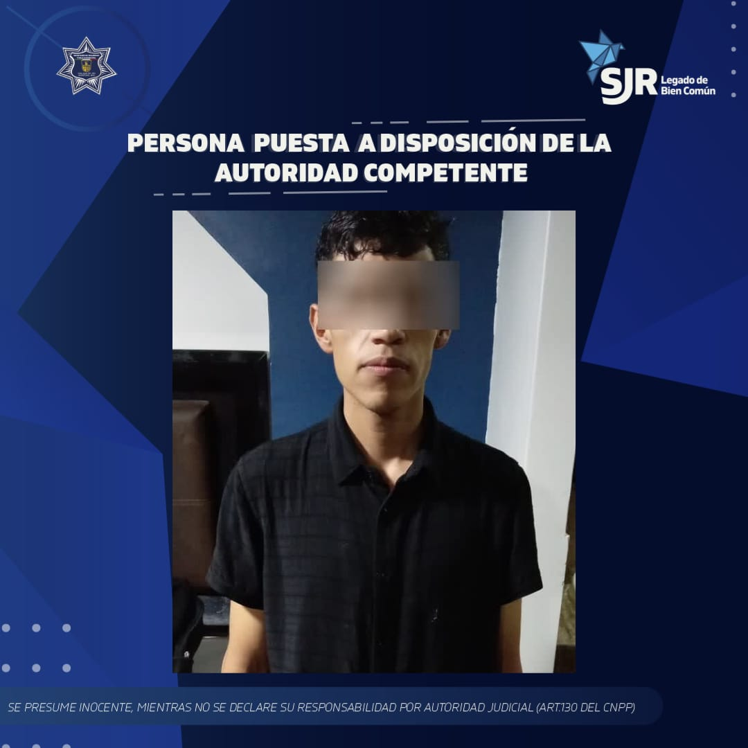Elementos de la Secretaría de Seguridad Pública Municipal de San Juan del Río (SSPM-SJR) detienen a un masculino por delitos contra la salud y portación de armas prohibidas en un hotel de la colonia Solares Banthi.
