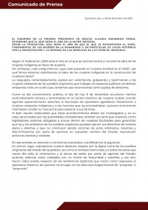 Legisladoras exhortan a las autoridades municipales y estatales competentes a detener de inmediato el acoso y hostigamiento contra los pueblos originarios de Querétaro