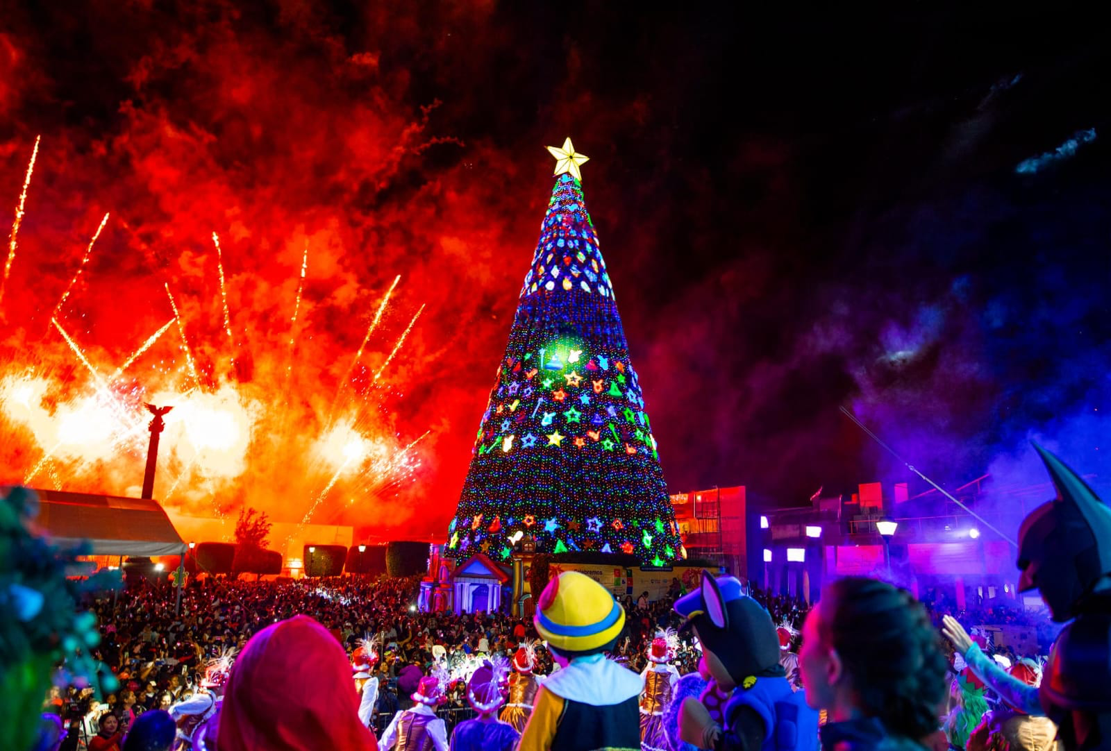 Autoridades municipales y estatales encienden el Pino Monumental del Festival Alegría en San Juan del Río
