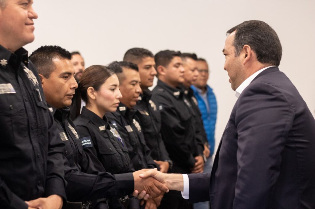 Derivado de su trabajo y esfuerzo en la prevención del delito, así como por su compromiso y dedicación para mantener seguro al municipio, 14 elementos de la Secretaría de Seguridad Pública Municipal de San Juan del Río (SSPM-SJR) recibieron un reconocimiento por parte de la cadena comercial Oxxo durante una ceremonia encabezada por el alcalde sanjuanense, Roberto Cabrera Valencia.