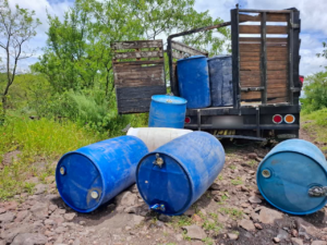 Se informa que la camioneta Ford tipo estaquitas, con placas para el Estado de Michoacán, así como los bidones con combustible fueron asegurados y puestos a disposición de la Fiscalía General de la República.