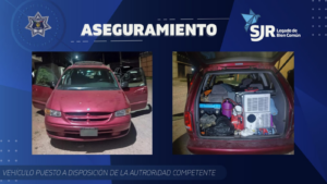 De acuerdo con el procedimiento de inspección realizado a la camioneta en la que se transportaba el masculino, se identificó que dicho vehículo marca Chrysler, está relacionado en la actividad ilícita de robos a lugar cerrado en la colonia Las Haciendas, y que dentro de la misma se encontraban los probables objetos robados.