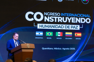 De igual manera, expresó que también es el testimonio que todas y todos los asistentes comparten este día, invitados y especialistas de diversos países haciendo un frente común y proactivo por la paz.