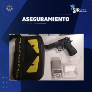 Como resultado de las labores de supervisión y atención a la ciudadanía que llevan a cabo los elementos de la Secretaría de Seguridad Pública Municipal (SSPM-SJR), se detuvo a Miguel “N” por delitos contra la salud en su modalidad de posesión simple de narcótico y portación de armas prohibidas, en la colonia Solares Banthi.