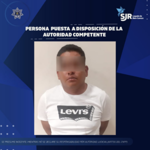 Elementos de la Secretaría de Seguridad Pública Municipal (SSPM-SJR), detienen a un masculino por el delito violencia familiar en la colonia Granjas Banthi.
