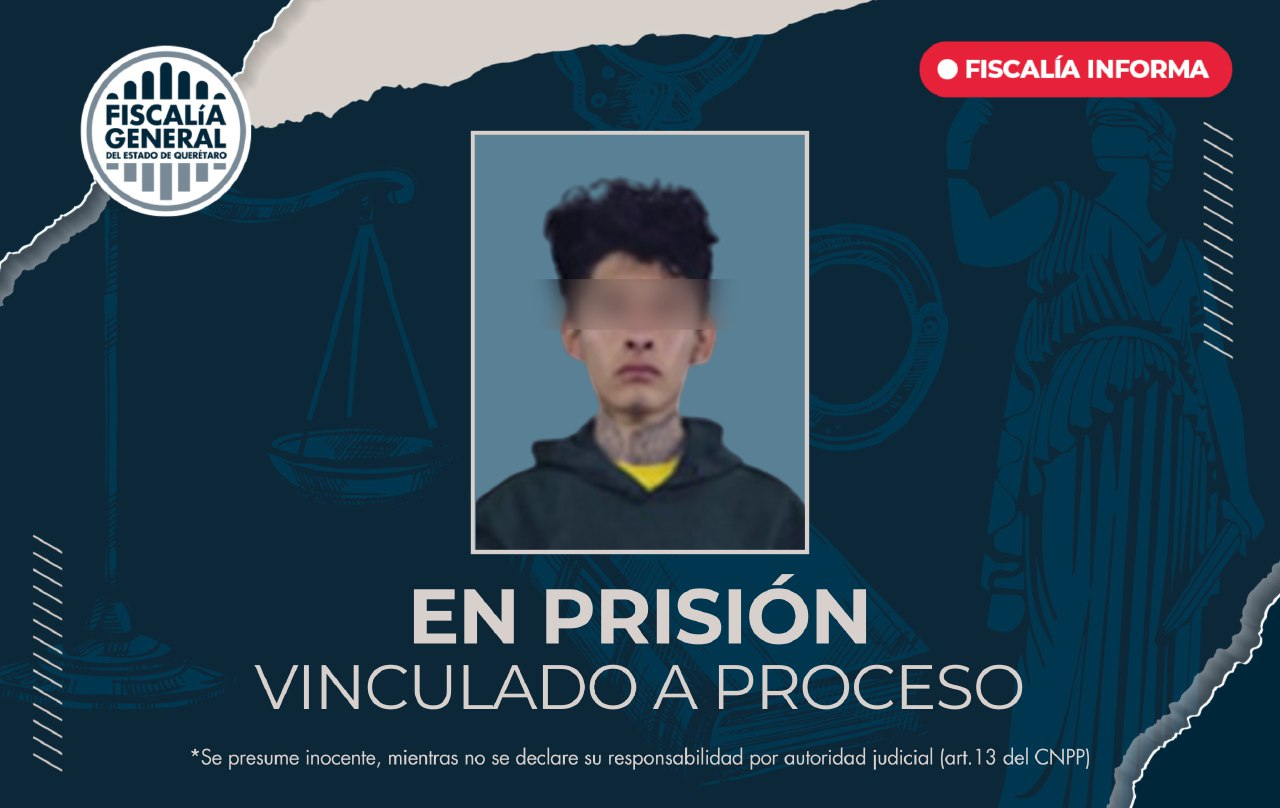 La Fiscalía General del Estado obtuvo la vinculación a proceso de una persona como probable autor del delito de robo calificado, por hechos ocurridos la noche del 15 de agosto de 2025, en el municipio de Corregidora.