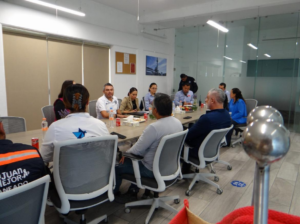 El secretario de Seguridad Pública Municipal de San Juan del Río (SSPM-SJR), Orlando Chávez Landaverde, sostuvo una reunión de trabajo con los directivos de la empresa Scribe, como parte de la estrategia de seguridad.