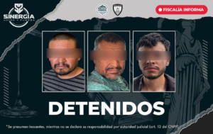 Durante las diligencias fueron detenidas tres personas del sexo masculino que se encontraban en el inmueble, quienes fueron puestas a disposición de la autoridad competente para continuar con las investigaciones correspondientes.