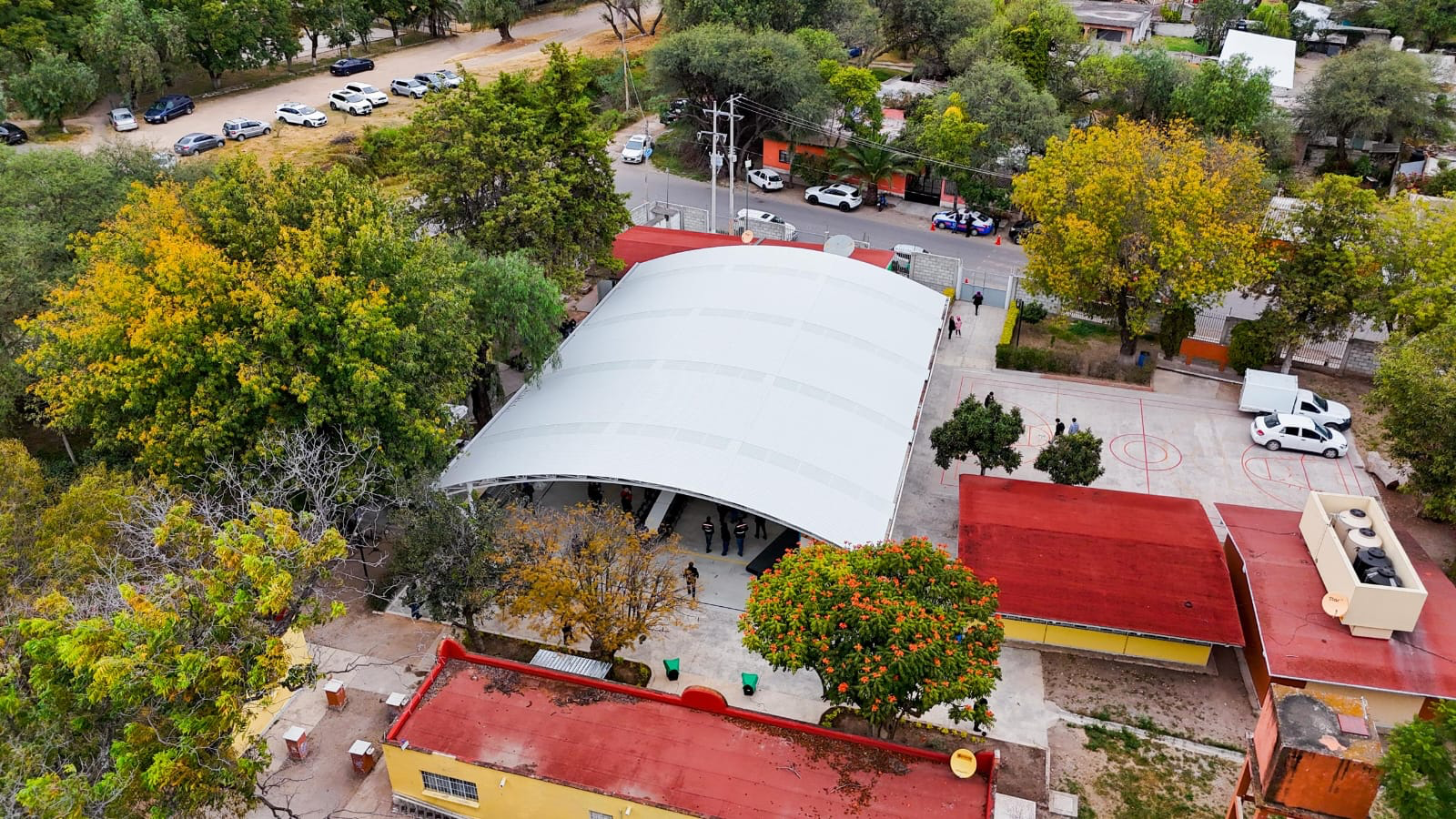 El director de la institución educativa, Efraín Cruz Guzmán, agradeció al presidente municipal de San Juan del Río, Roberto Cabrera Valencia, así como a las autoridades de la demarcación por la construcción de la techumbre y la rehabilitación de la cancha, pues se trata de obras que benefician a la comunidad escolar. La presidenta del Comité de Obras, Rosalba Alegría Ramírez, puntualizó que la obra servirá para que las juventudes disfruten sus actividades deportivas, como el volibol, en un espacio digno.