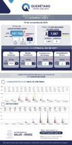 La Secretaría de Salud de Querétaro reportó este lunes cero defunciones por COVID-19 y que, en los últimos siete días no se han sumado casos de la enfermedad en el estado. El registro acumulado es de 197 mil 768 casos: 54 por ciento son mujeres y 46 por ciento son hombres.